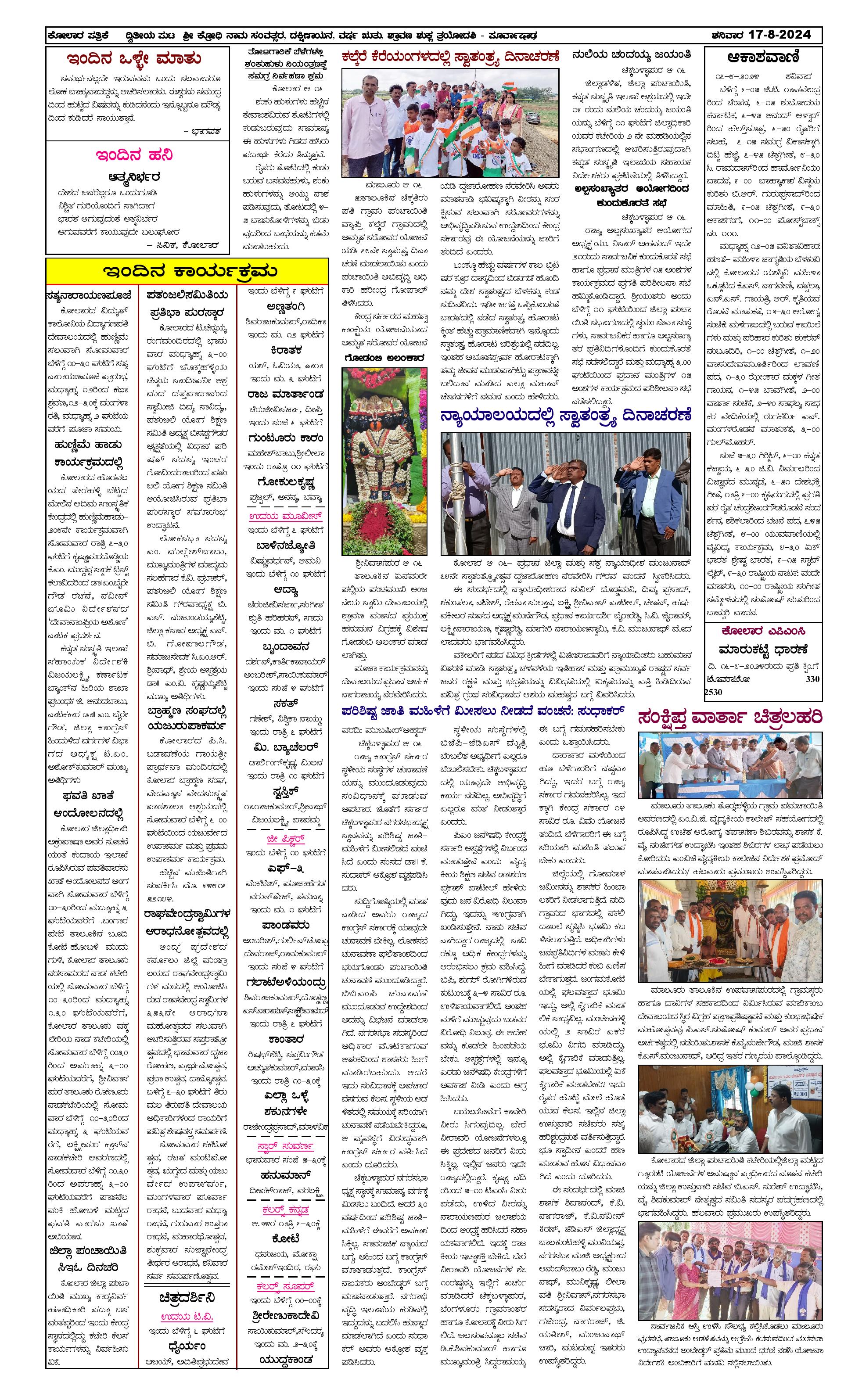 17 ಆಗಸ್ಟ್ 2024 Page: 2 August 17, 2024 << First << 2 >> Last >> Page 1Page 2Page 3Page 4 × 17 ಆಗಸ್ಟ್ 2024 page-1page-2page-3page-4 << First << 2 >> Last >> page-1page-2page-3page-4 page-2