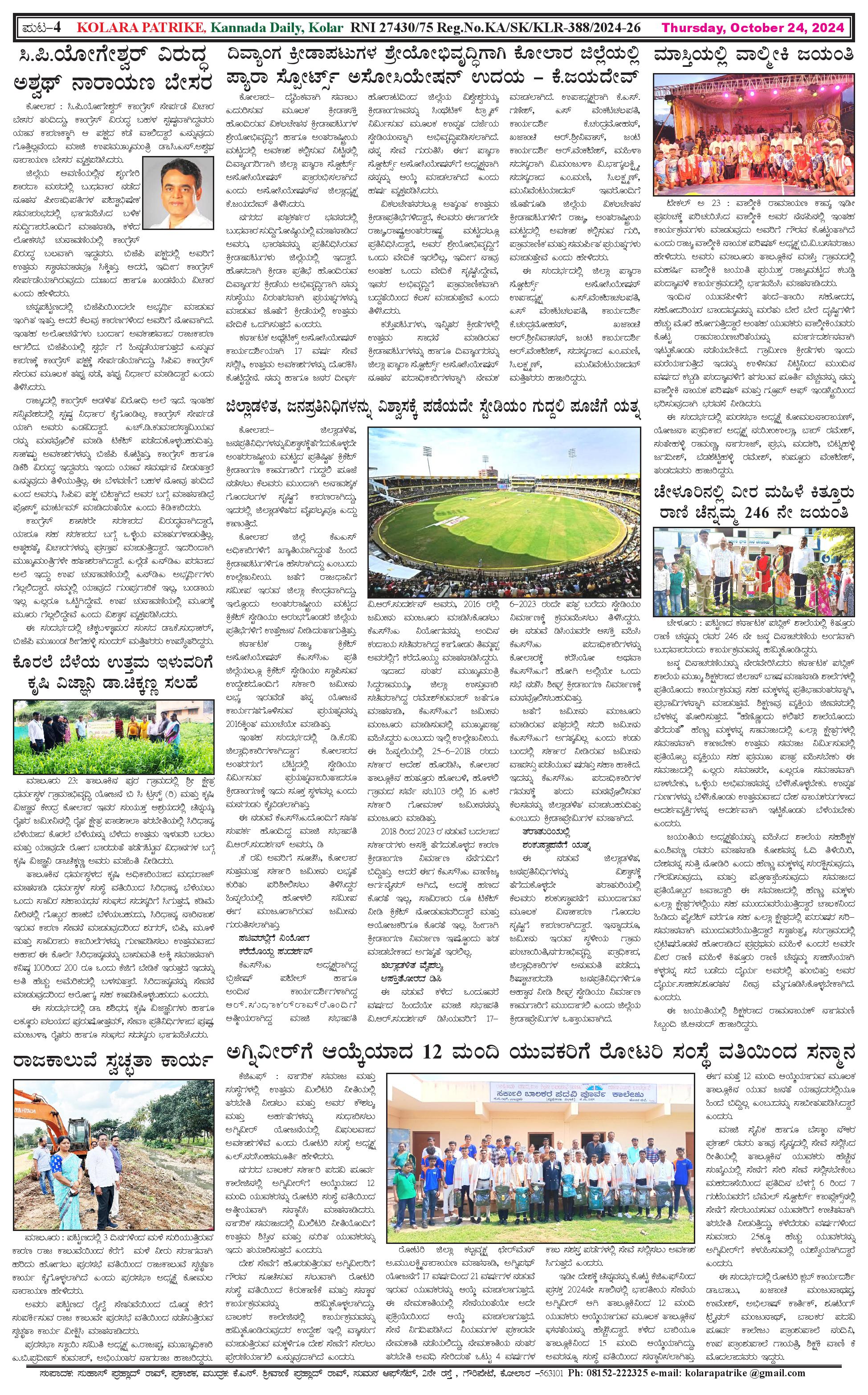 24 ಅಕ್ಟೋಬರ್ 2024 Page: 4 October 24, 2024 << First << 4 >> Last >> Page 1Page 2Page 3Page 4 × 24 ಅಕ್ಟೋಬರ್ 2024 page-1page-2page-3page-4 << First << 4 >> Last >> page-1page-2page-3page-4 page-4