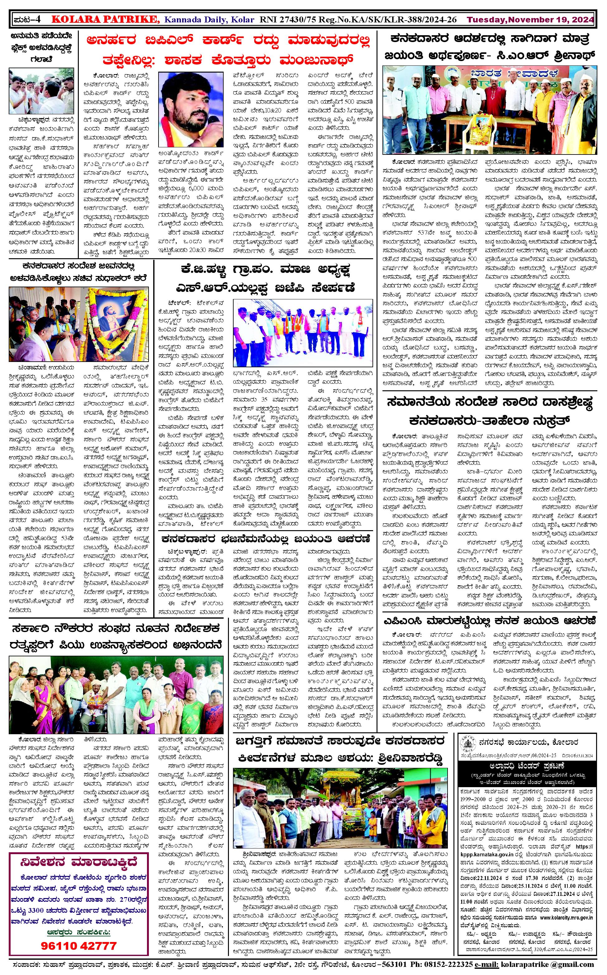 19 ನವೆಂಬರ್ 2024 Page: 4 November 19, 2024 << First << 4 >> Last >> Page 1Page 2Page 3Page 4 × 19 ನವೆಂಬರ್ 2024 page-1page-2page-3page-4 << First << 4 >> Last >> page-1page-2page-3page-4 page-4
