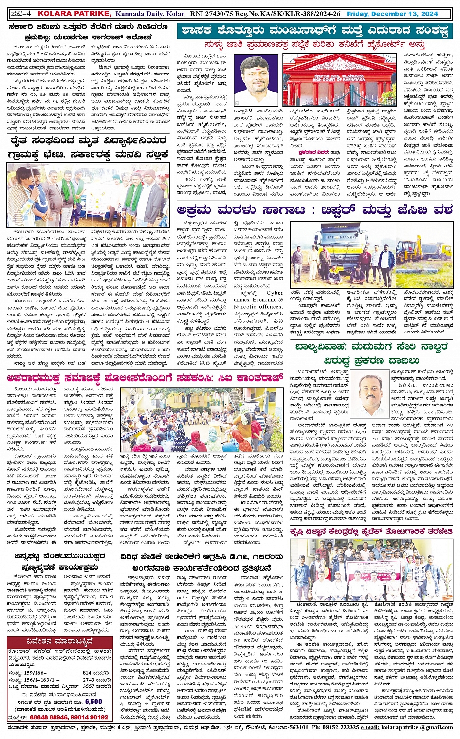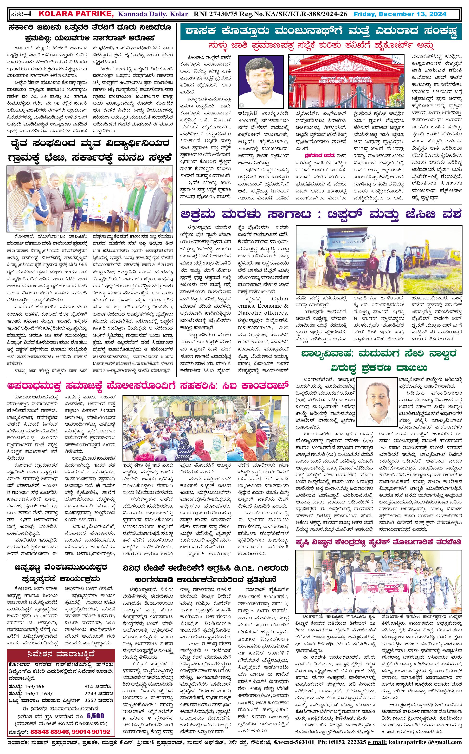 13 ಡಿಸೆಂಬರ್ 2024 Page: 4 December 13, 2024 << First << 4 >> Last >> Page 1Page 2Page 3Page 4 × 13 ಡಿಸೆಂಬರ್ 2024 page-1page-2page-3page-4 << First << 4 >> Last >> page-1page-2page-3page-4 page-4