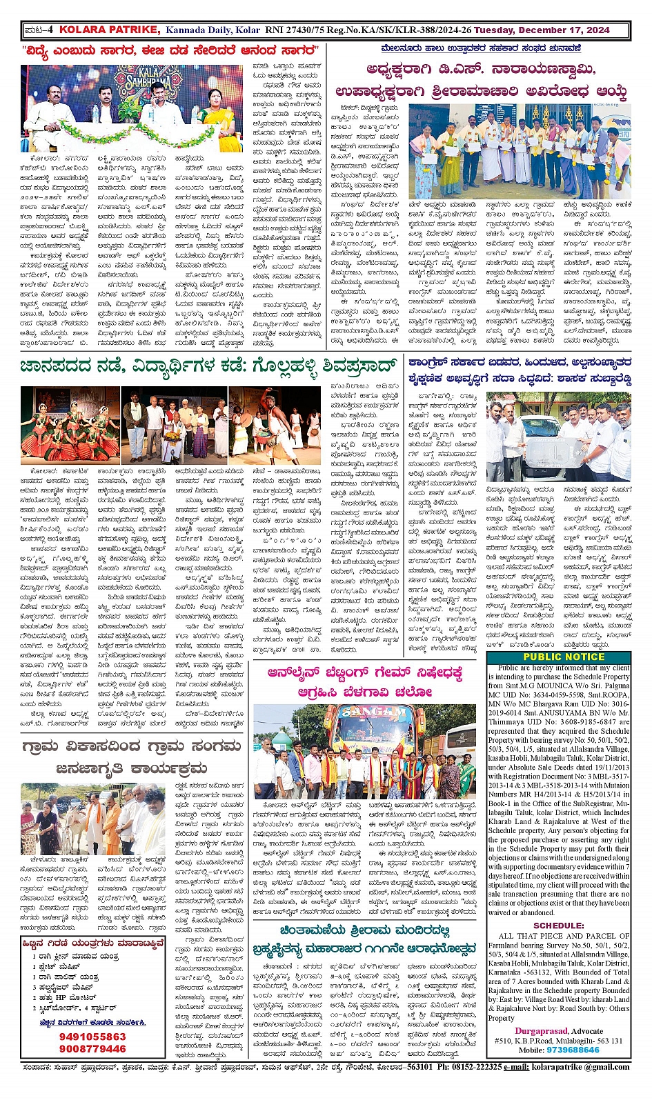 17 ಡಿಸೆಂಬರ್ 2024 Page: 4 December 17, 2024 << First << 4 >> Last >> Page 1Page 2Page 3Page 4 × 17 ಡಿಸೆಂಬರ್ 2024 page-1page-2page-3page-4 << First << 4 >> Last >> page-1page-2page-3page-4 page-4
