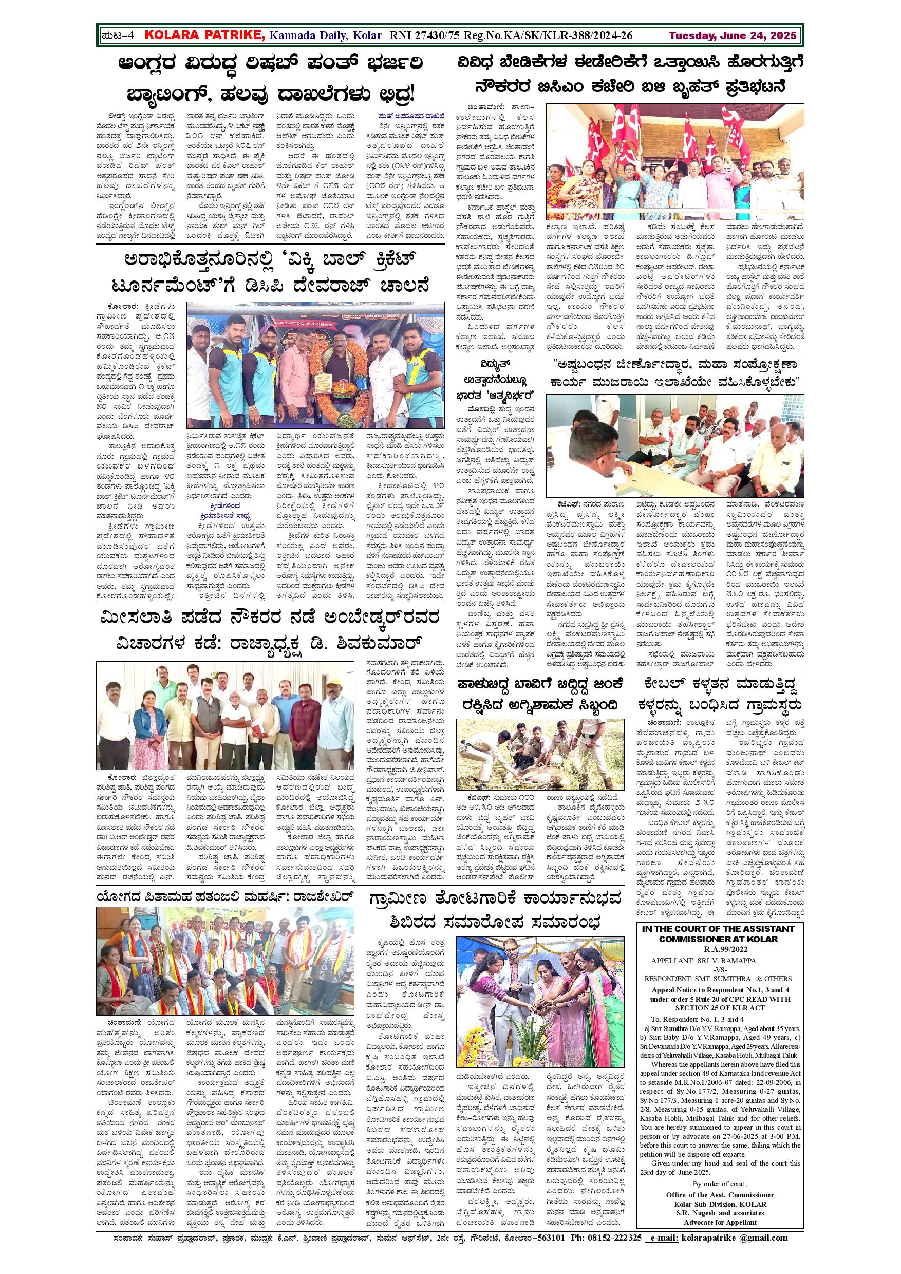 24 ಜೂನ್ 2025 Page: 4 June 24, 2025 << First << 4 >> Last >> Page 1Page 2Page 3Page 4 × 24 ಜೂನ್ 2025 page-1page-2page-3page-4 << First << 4 >> Last >> page-1page-2page-3page-4 page-4