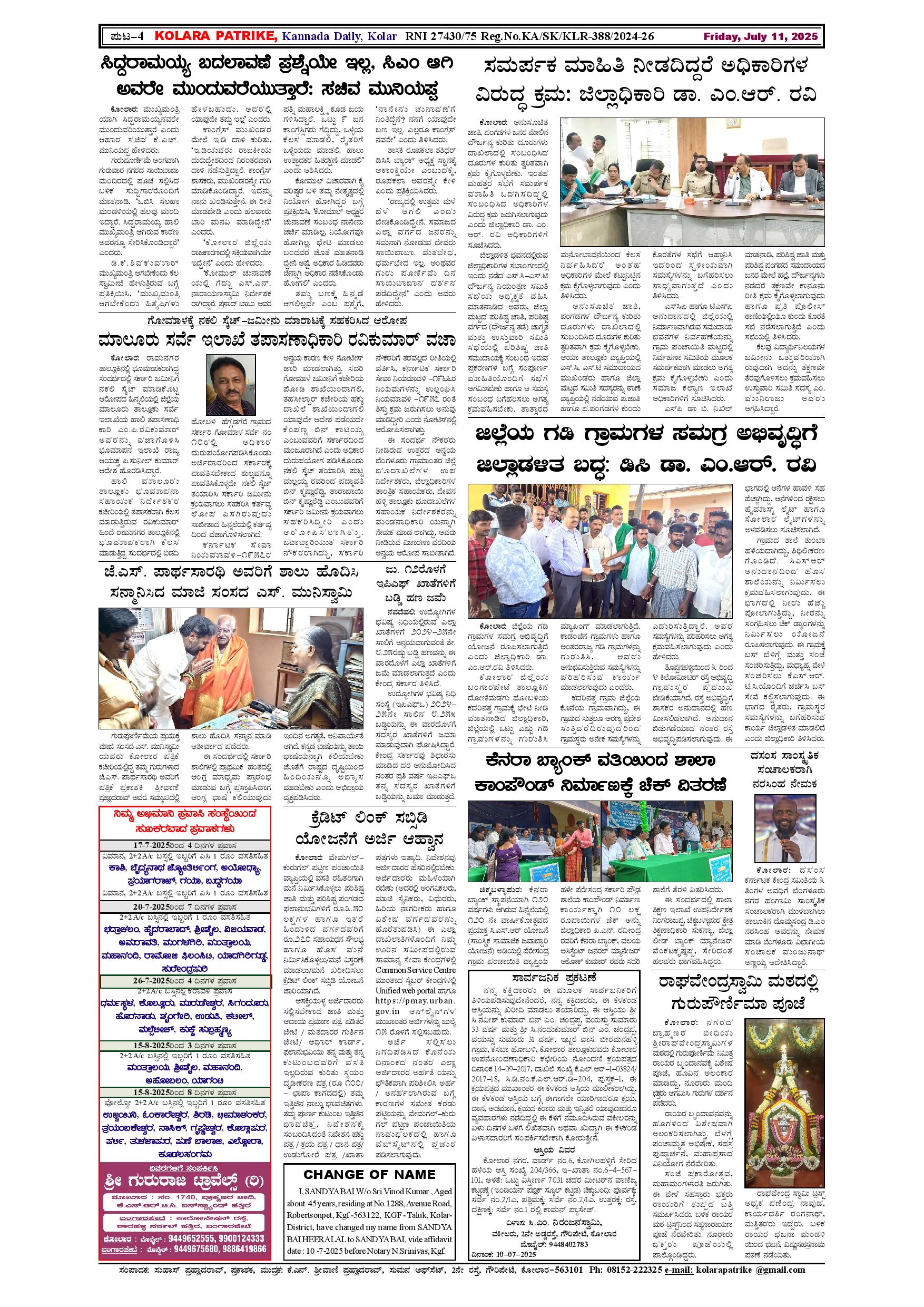 11 ಜುಲೈ 2025 Page: 4 July 11, 2025 << First << 4 >> Last >> Page 1Page 2Page 3Page 4 × 11 ಜುಲೈ 2025 page-1page-2page-3page-4 << First << 4 >> Last >> page-1page-2page-3page-4 page-4