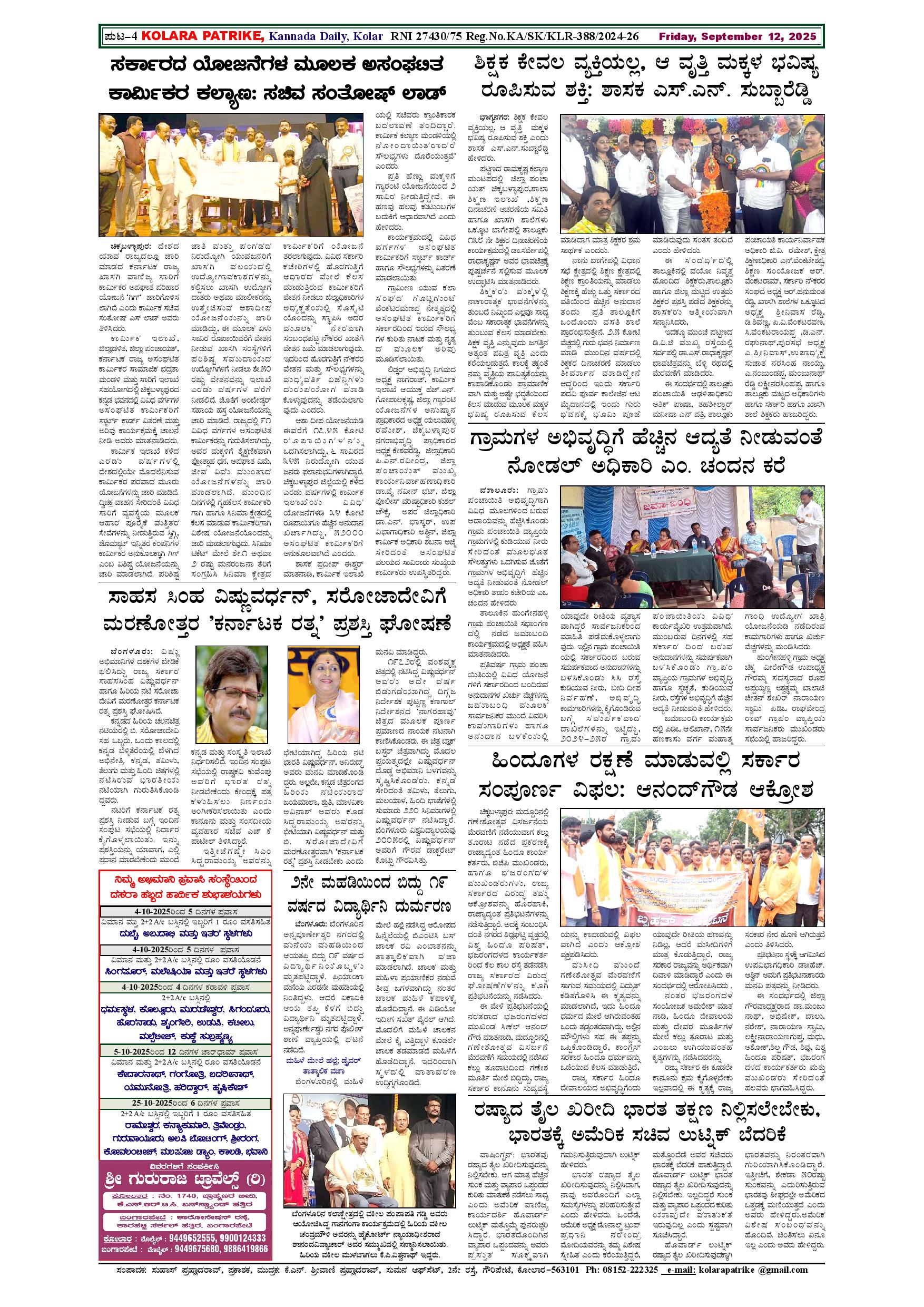12 ಸೆಪ್ಟೆಂಬರ್ 2025 Page: 4 September 12, 2025 << First << 4 >> Last >> Page 1Page 2Page 3Page 4 × 12 ಸೆಪ್ಟೆಂಬರ್ 2025 page-1page-2page-3page-4 << First << 4 >> Last >> page-1page-2page-3page-4 page-4